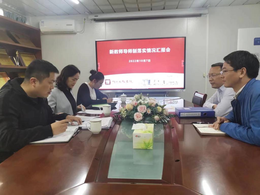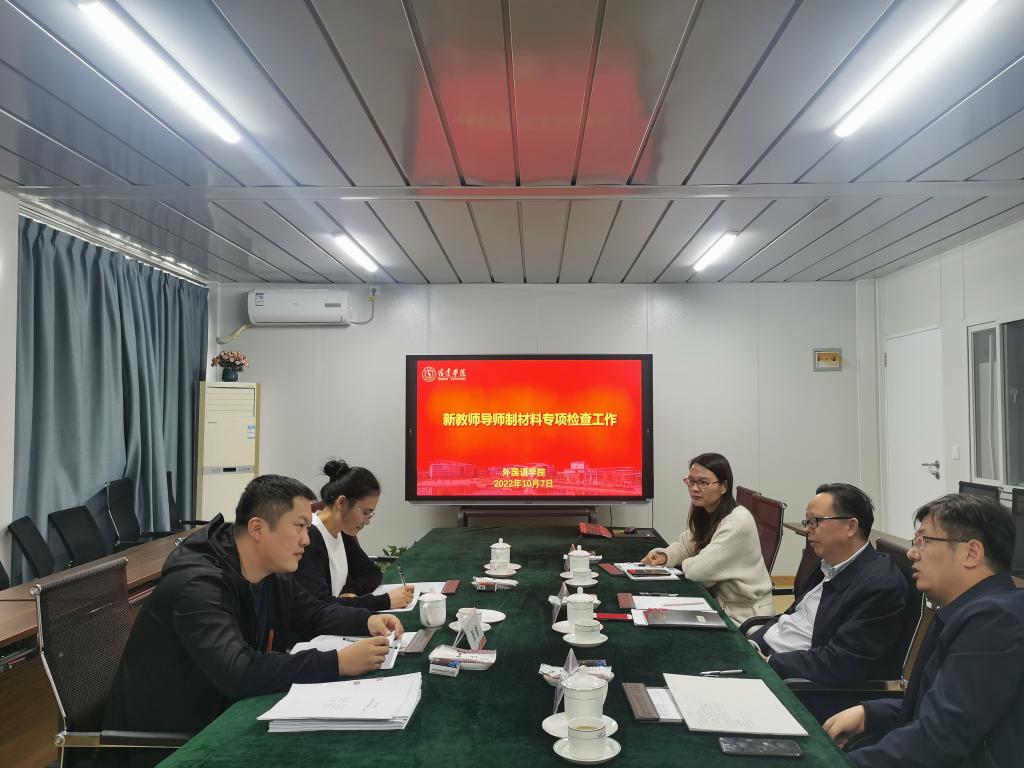 为有效推进新教师导师制的贯彻落实,10月7日下午,人事处副处长杨邦来带领工作人员,分4组前往各二级学院实地检查新教师导师制开展情况。此次检查,人事处听取了各院部相关人员工作汇报,同时实地检查了相关材料,并根据检查中发现的问题提出了相关整改建议。